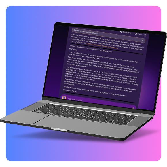 Need to write a performance feedback email? Xapa generates a thoughtful, balanced message that acknowledges strengths while addressing areas for growth—all structured for clarity and impact.